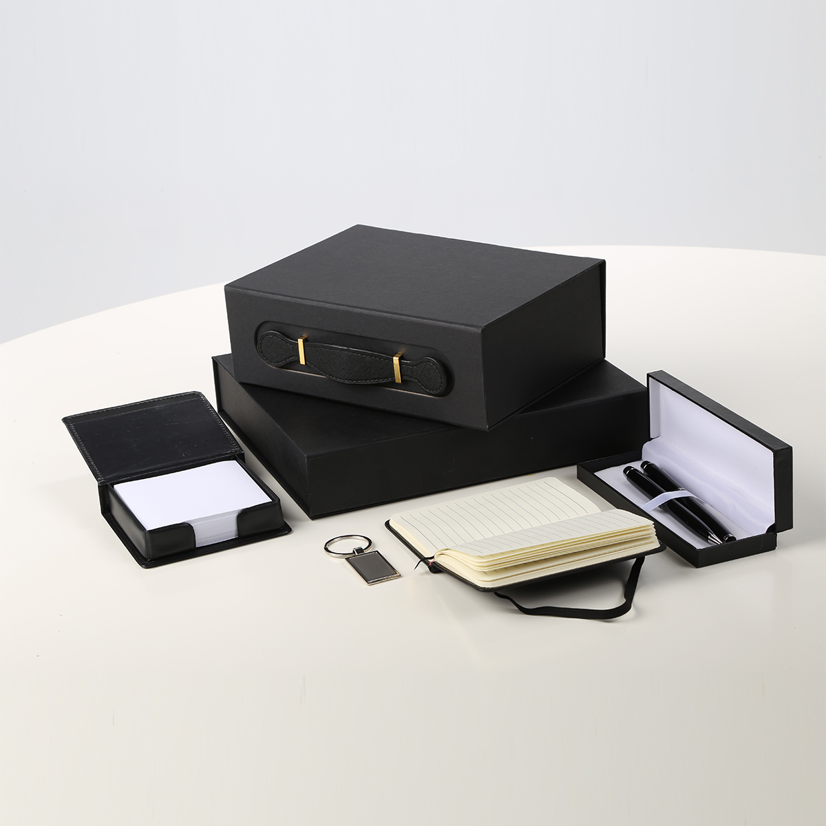 Kancelarijski set predstavlja elegantan izbor poklona za poslovne partnere ili članove tima, pažljivo osmišljen za svakodnevne potrebe. Set uključuje pisaći set s kvalitetnom hemijskom olovkom i olovkom za precizno pisanje, blok za brzo zapisivanje ideja, rokovnik za organizaciju obaveza i privjesak kao dodatak koji spaja stil i funkcionalnost. Svi artikli dolaze usklađeni u dizajnu i boji, pružajući profesionalan i estetski ugodan izgled. Idealan je za brendiranje, pa vaša kompanija može dodati logo na sve stavke, pružajući prepoznatljivost i praktičnost svakom korisniku.
